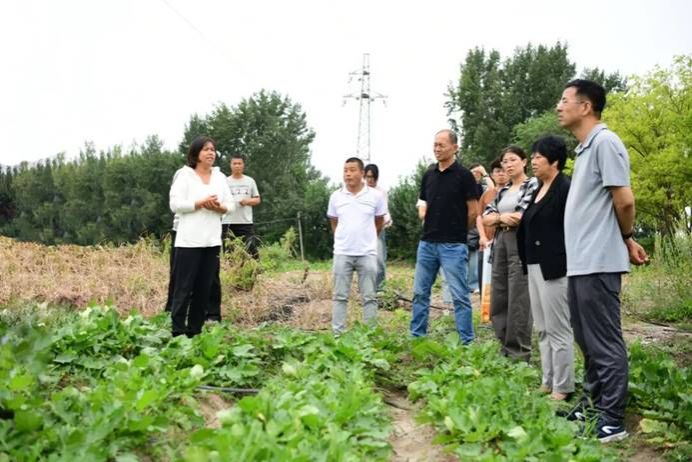 在理论授课环节,崔新仪围绕《农产品安全生产与绿色防控》,从农产品安全生产的规范、绿色防控、使用农药的注意事项等方面作了深入浅出的讲解。市农科院蔬菜研究所王立宾副研究员作《脆甜高品质沙窝萝卜新品种配套栽培技术》授课。在实地指导环节,全体人员集体乘车来到绿亨沙窝萝卜种植基地,实地察看了沙窝萝卜埂上种植技术、节能灌溉技术的应用、病虫防治等情况,基地技术人员向大家介绍了整个基地的种植与管理情况,专家针对菜农们的提问,一对一进行解答,什么时候浇水、什么时候施肥、怎样防治病虫害等,都讲得明明白白。